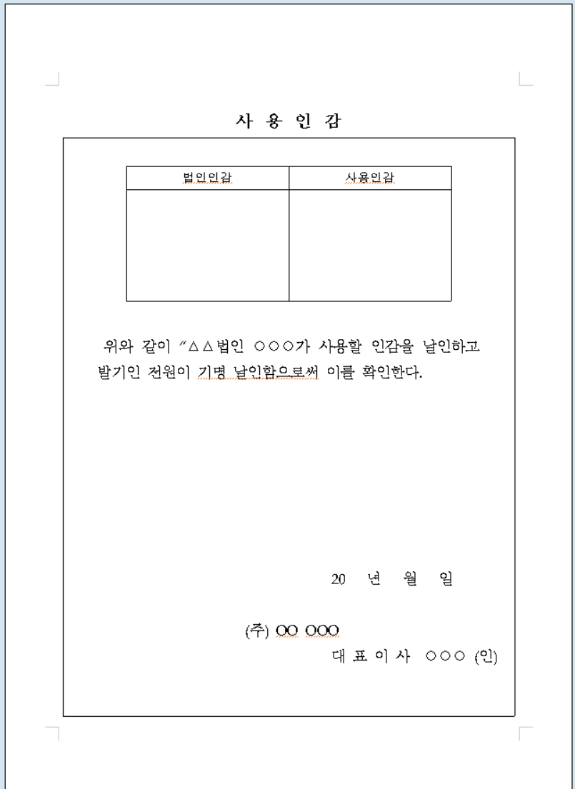 입찰 서류: 공공기관이나 대기업의 입찰에 참여할 때, 입찰 서류에 사용인감을 첨부하여 공식적인 참여 의사를 나타냅니다.